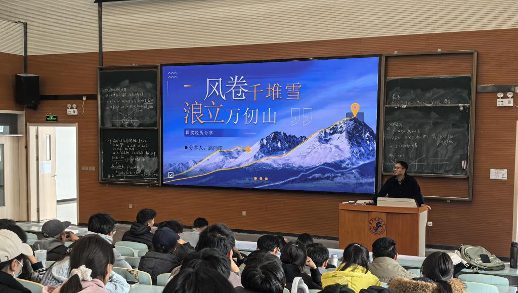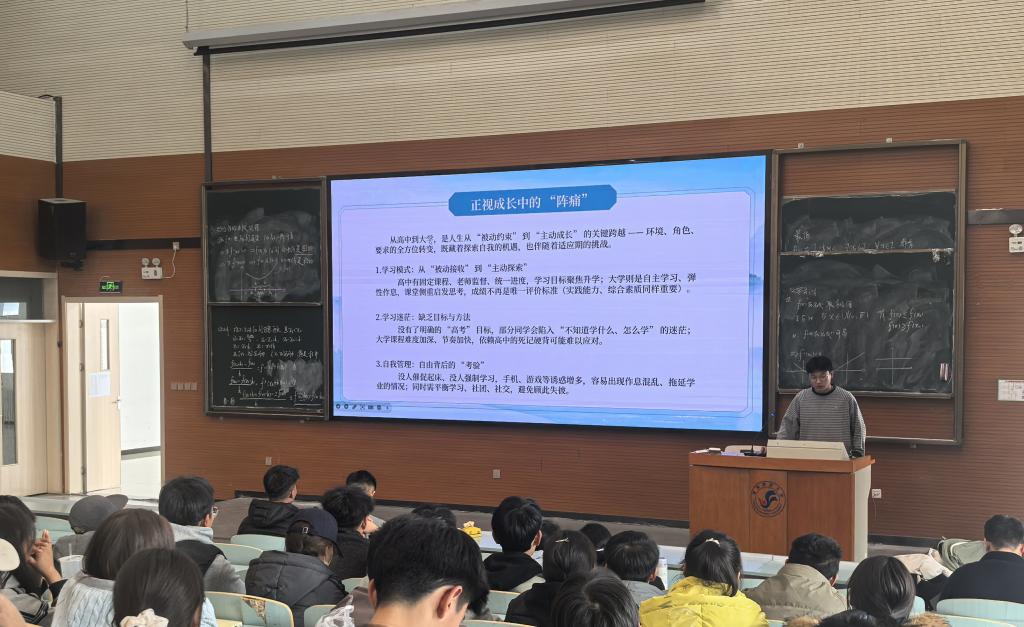2024-2025年度国奖获得者及2022级推免生高向阳、张子浩和李俊鹏等三位同学围绕“树立正确三观”、“人生规划”、“学习方法与技巧”、“社会实践”、“大学生存之道”等主题进行分享。大一阶段应当建立积极的价值观和心态,踏实学习每一门课程;并坚持利用寒暑假参加志愿活动以提升组织协调和人际交往能力;其次积极参与各类专业竞赛和科研项目,在实践中提高专业技能;最后重视日常英语学习,做好长远的学业规划,不断尝试突破自我。会上,同学们针对目前学习、生活中出现的问题与困惑进行了互动交流。
